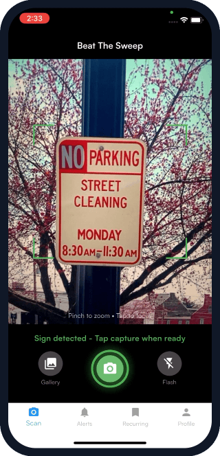 So he built Beat the Sweep, a mobile app that reads posted street-sweeping signage and sets reminders so you actually move your car on time. You snap a photo of the sign on your block, the app parses the schedule, and it pings you before the sweeper rolls through. It’s free to download with three reminders included.