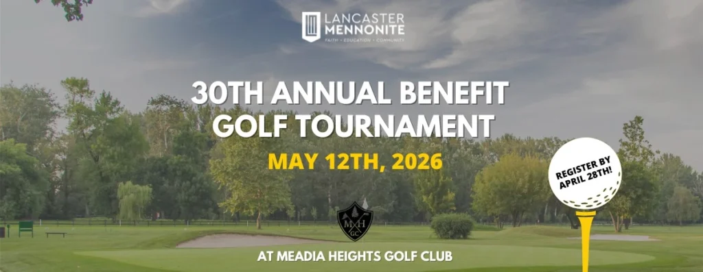 Join us for the 30th Annual Lancaster Mennonite Golf Tournament to be held at Meadia Heights Golf Club, 402 Golf Road, Lancaster, on Tuesday, May 12, 2026 for a morning or afternoon round of golf.