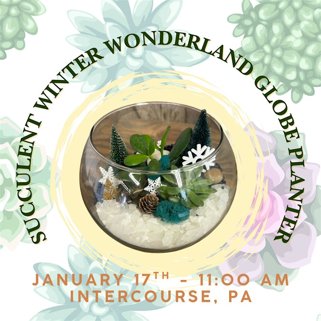 Featuring a selection of succulents nestled in a clear glass globe, you will build a Winter Wonderland using Frosty white snowflakes, blue pebbles and icy sea glass. Adorn this winter-scape with a Polar bear or penguin figurine to finish off its imaginative habitat.